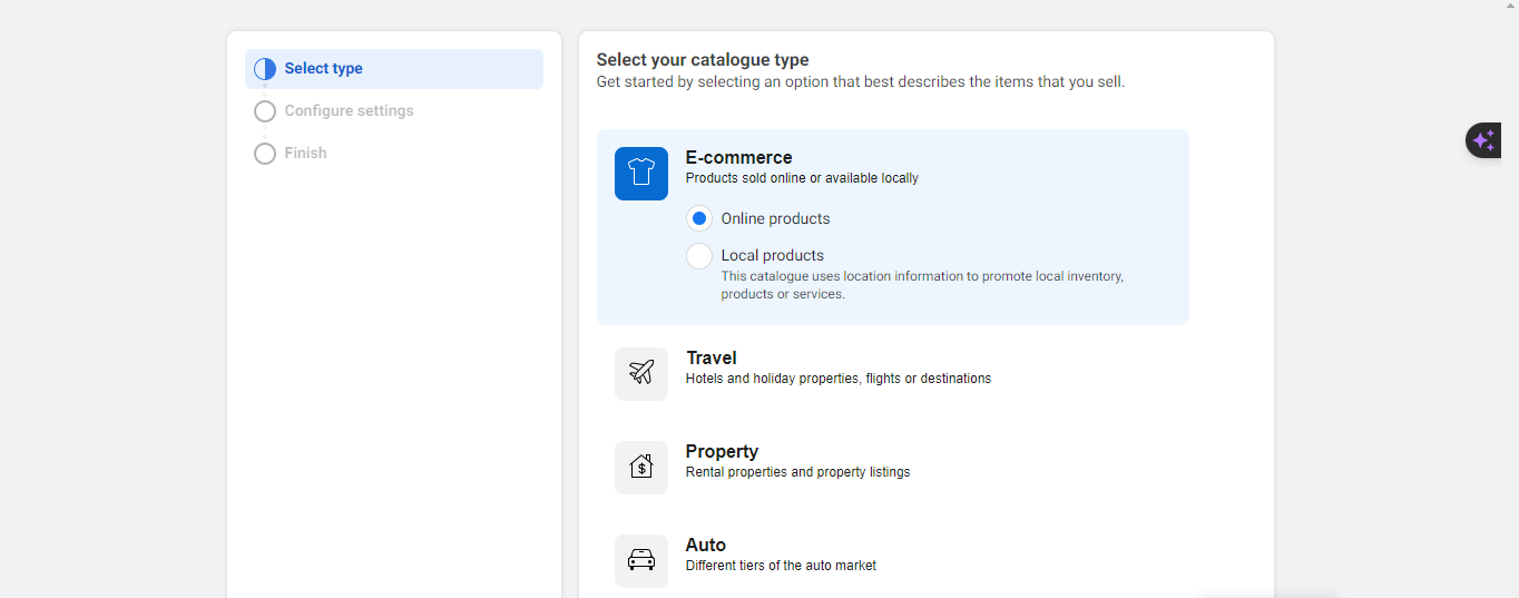 - Select `Online` or `Local Products` based on your business type, then click `Next`.